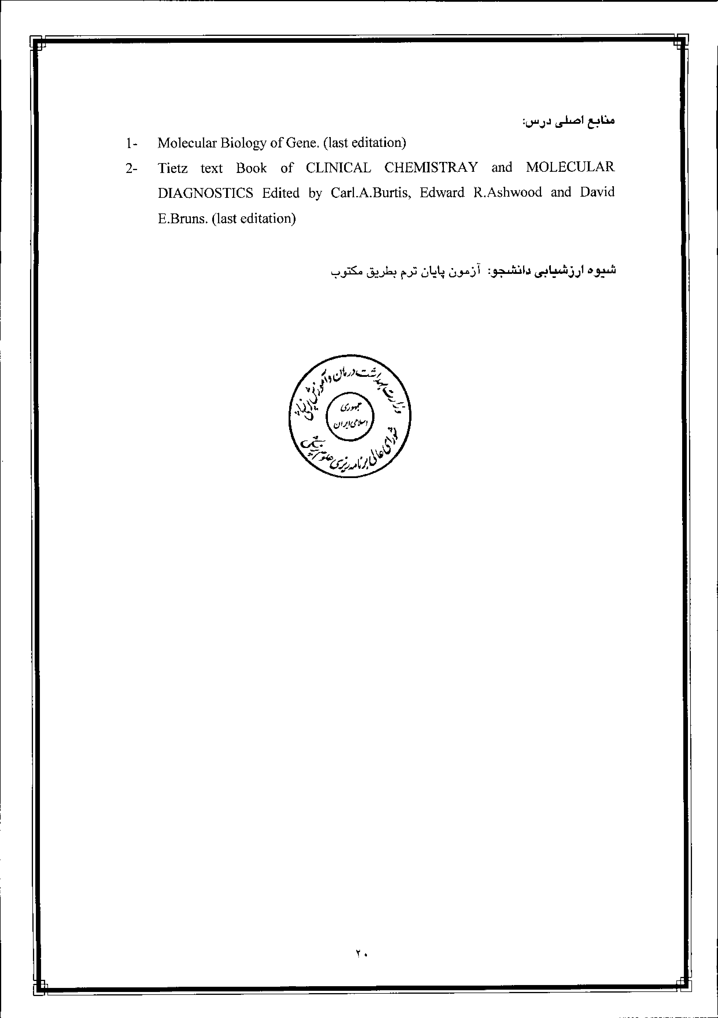 مشکاتی براتعلی دوره کارشناسی ارشد بیوشیمی بالینی 16 تیر 1397 بازدید: 202 امتیاز: ( 0 Rating ) بیوشیمی و تشخیص ملکولی امتیاز کاربران لطفا رای دهید رای 1 رای 2 رای 3 رای 4 رای 5 قبلی بعدی