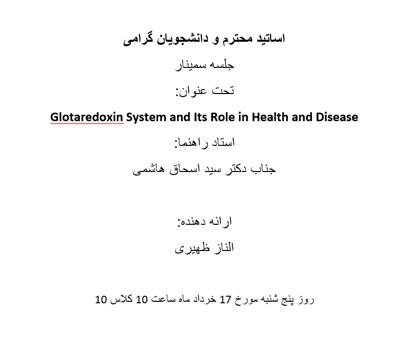 خانم کریمی سمینارها 17 خرداد 1397 بازدید: 303 امتیاز: ( 0 Rating ) سمینار روز پنج شنبه 17خرداد97 امتیاز کاربران لطفا رای دهید رای 1 رای 2 رای 3 رای 4 رای 5 ارائه دهنده موضوع: خانم ظهیری Glotaredoxin System and Its Role in Health and Disease روز پنج شنبه مورخ 17 خرداد ماه ساعت 10 کلاس 10 قبلی بعدی