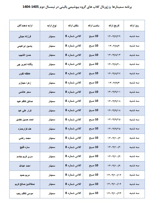 خانم کریمی اخبار 08 بهمن 1397 بازدید: 208 امتیاز: ( 0 Rating ) اعلام نمرات درس بیوشیمی نظری (1) دندان پزشکی امتیاز کاربران لطفا رای دهید رای 1 رای 2 رای 3 رای 4 رای 5 جهت مشاهده نمرات درس بیوشیمی نظری (1) در رشته دندان پزشکی به قسمت اعلام نمرات امتحانی نیمسال جاری در قسمت منو مراجعه نمایید. با تشکر قبلی بعدی