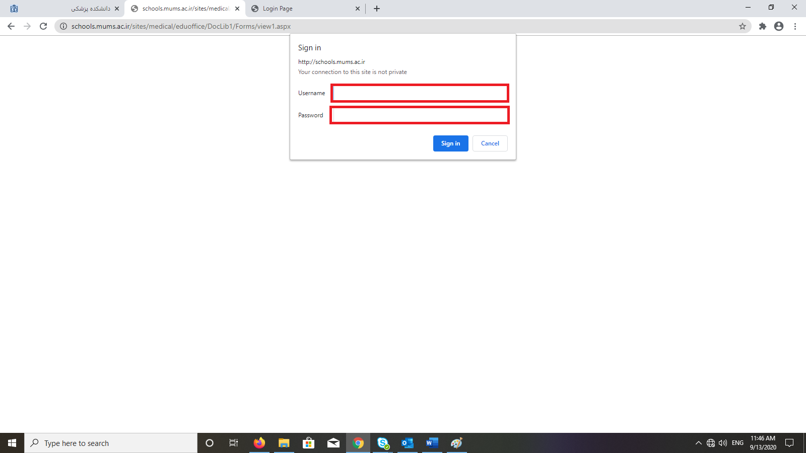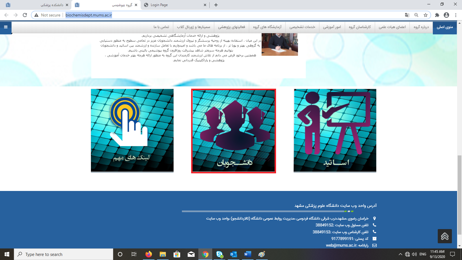 در این قسمت Username و Password خود را وارد نموده و بعد از تکمیل به استاد راهنمای محترم خود ارسال نمائید. |